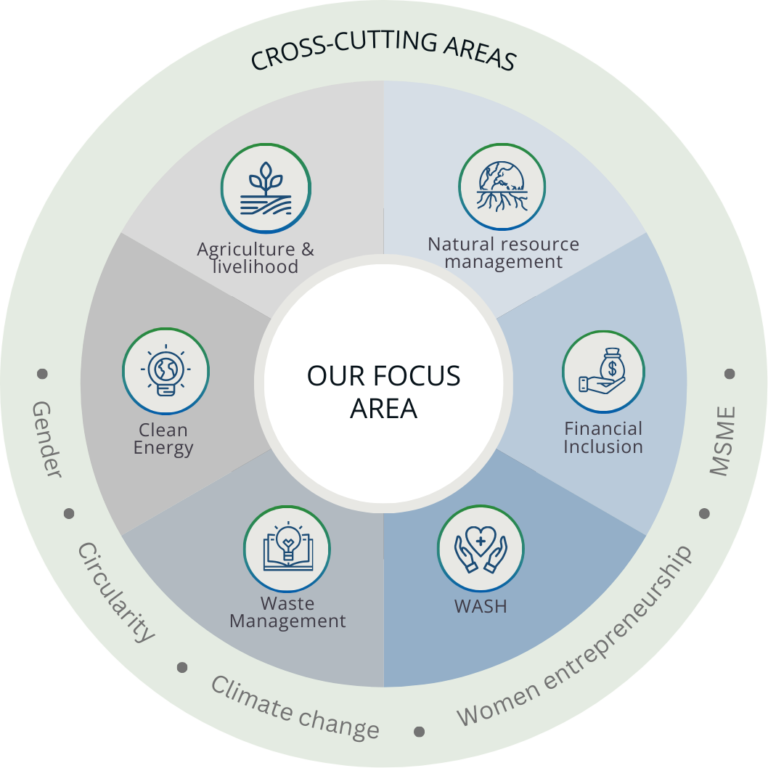 Since inception, Samavit has built strong expertise in development themes such as financial inclusion, Water, Sanitation and Hygiene (WASH), public health, agriculture, sustainable livelihoods, women empowerment, climate change, clean energy, natural resource management, MSME development, and digital literacy. Some of our signature engagements have been briefly described below: